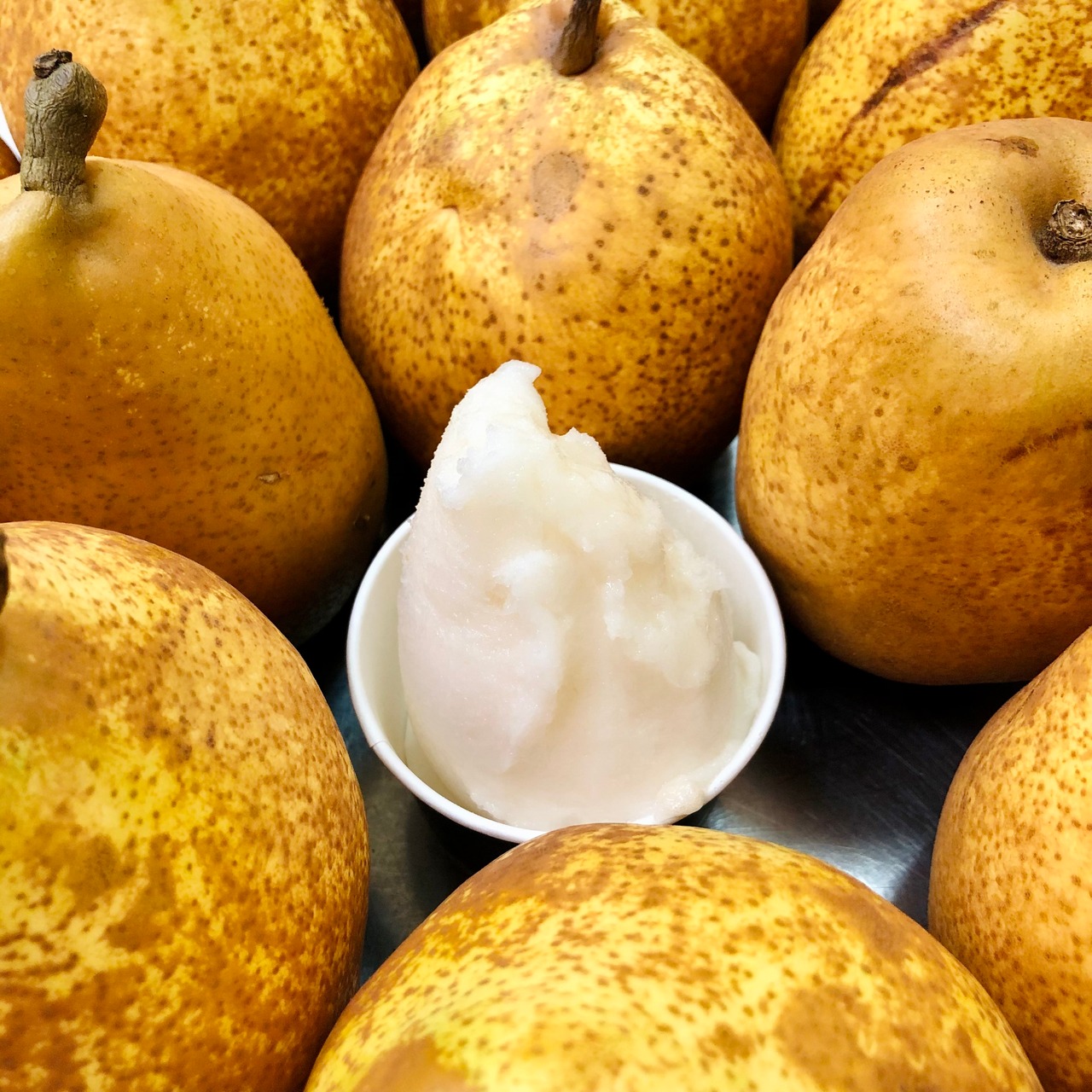 原材料:洋梨、砂糖、レモン果汁/トレハロース、安定剤(増粘多糖類:大豆由来)